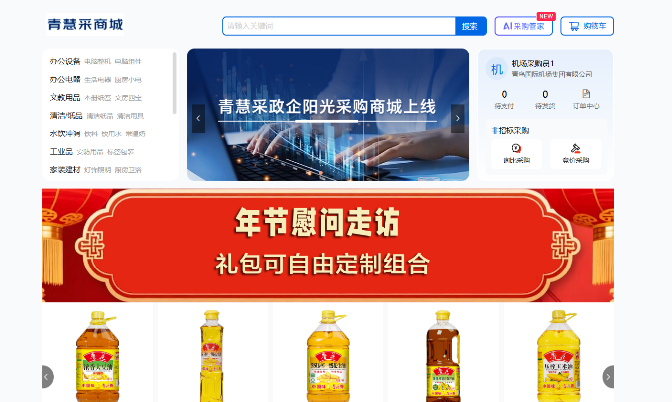 “青慧采”政企陽光采購商城作為青島推進政企采購數(shù)字化轉(zhuǎn)型的重要載體,匯聚海量優(yōu)質(zhì)供應商資源,覆蓋辦公用品、后勤物資等200萬個常用品類,可充分滿足國企多元化采購需求。此次青島國際機場集團首單試點的成功落地,不僅為自身采購管理優(yōu)化積累了寶貴經(jīng)驗,也為全市市屬國企推廣“青慧采”平臺應用、規(guī)范物資采購行為提供了可借鑒、可復制的實踐樣本。