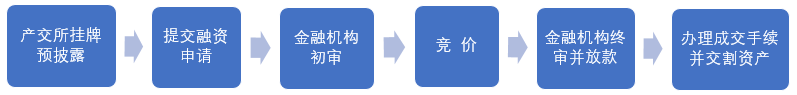 (5)金融機(jī)構(gòu)終審并放款:金融機(jī)構(gòu)對融資項目終審并放款至產(chǎn)交所指定賬戶。