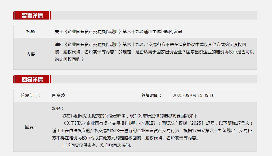 關(guān)于《企業(yè)國有資產(chǎn)交易操作規(guī)則》第六十九條適用主體問題的咨詢