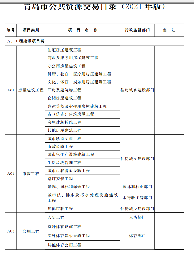現(xiàn)將《青島市公共資源交易目錄(2021年版)》(以下簡(jiǎn)稱《目錄》)印發(fā)給你們,并就有關(guān)事項(xiàng)通知如下: