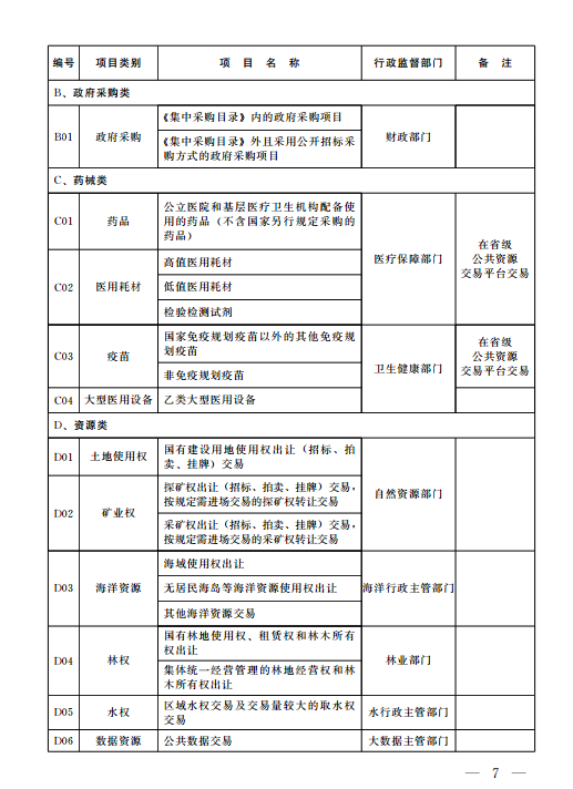 一、凡列入《目錄》的公共資源交易項(xiàng)目,應(yīng)全部進(jìn)入各級(jí)公共資源交易平臺(tái)交易。鼓勵(lì)《目錄》外項(xiàng)目進(jìn)入公共資源交易平臺(tái)交易。涉及國(guó)家安全、國(guó)家秘密、搶險(xiǎn)救災(zāi)等特殊項(xiàng)目,按有關(guān)規(guī)定執(zhí)行。